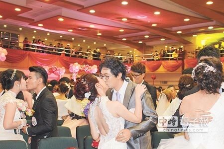 一年一度的大甲媽嫁女兒集團婚禮,20日在鎮瀾宮文化大樓熱鬧登場,99對新人在大甲媽的見證下攜手步入禮堂,陳宜虹、陳政諺兩姊弟特地一起報名參加婚禮,一起結婚為婚禮留下一個難忘的回憶。
