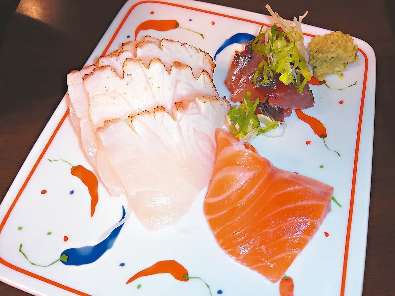 烤魚下巴相當入味,沾上最愛的胡椒粉,幾乎入口即化,總覺得才剛入口怎麼就沒了;綜合和鮭魚生魚片都相當新鮮、豐腴,微沾佐料即可,入口能感受到生魚片的油脂和芳香;烏龍麵也在水準以上,既能吃飽也好吃。扣除時價計算的魚下巴,兩種生魚片加上烏龍麵不到500元,在日本料理來說,不算貴,更能感受師傅對其他食材的手藝。