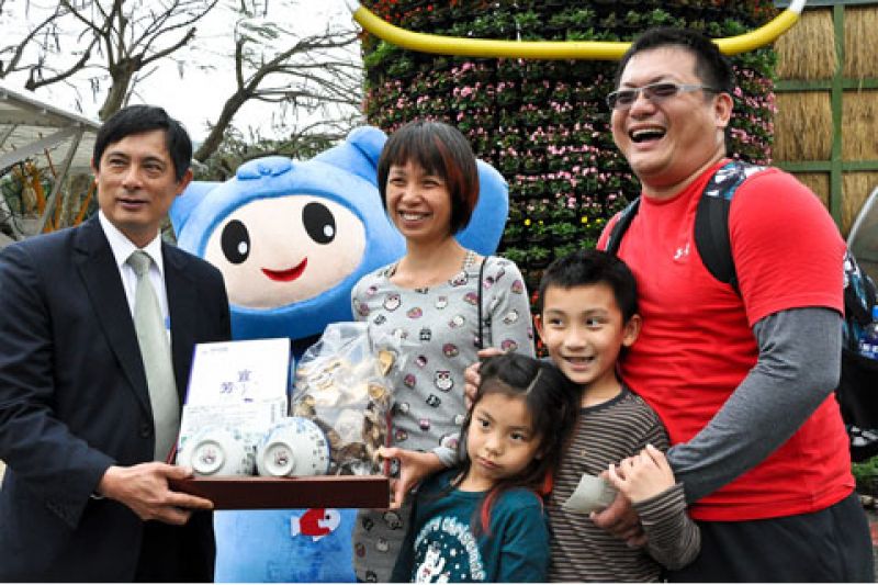 2014宜蘭綠色博覽會於3月29日開園,4月 8日就出現第十萬名遊客,來自高雄的李俊賢一家人是幸運兒,獲得長榮鳳凰酒店高級景觀客房平日住宿招待券等獎品。