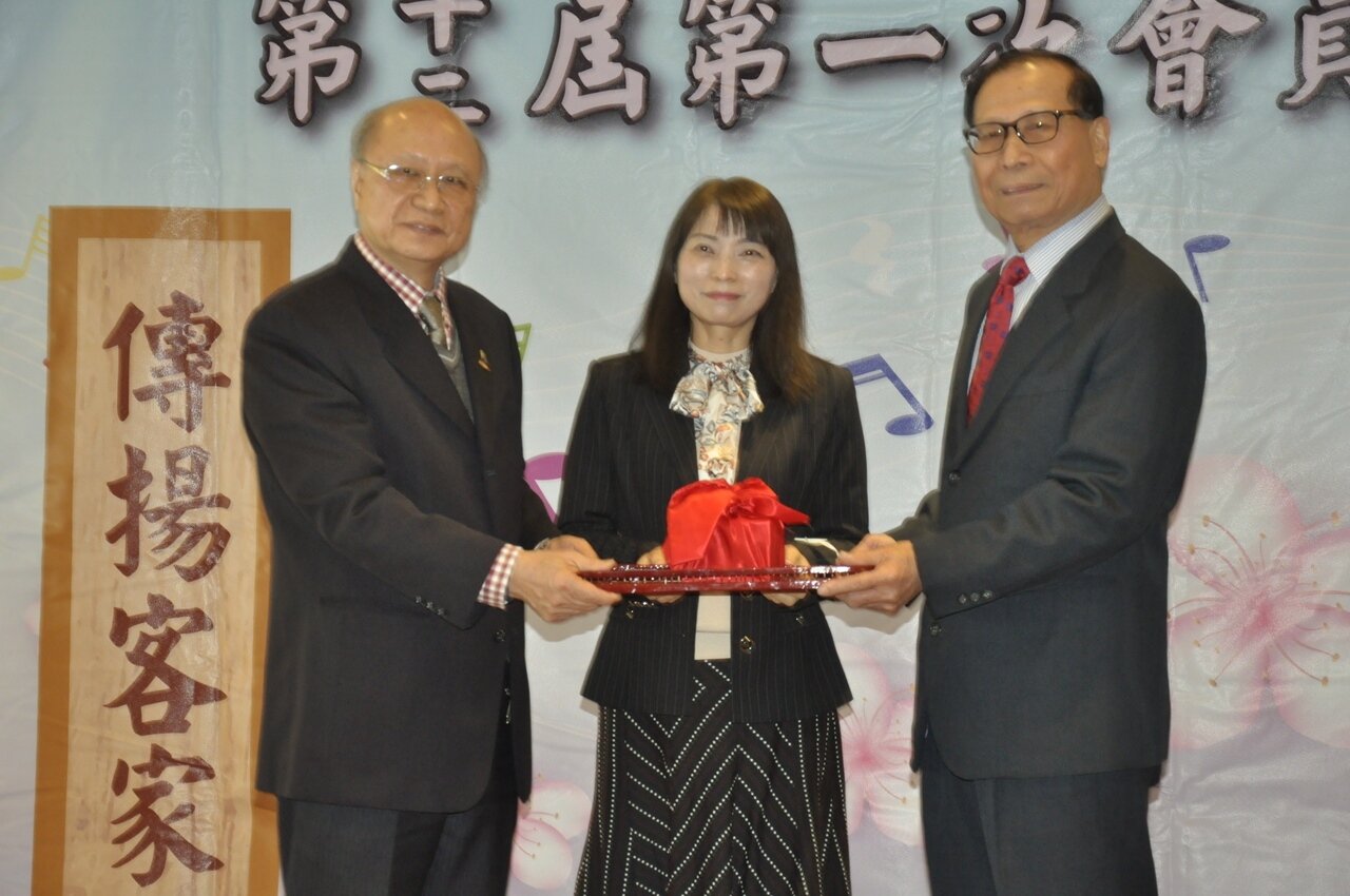 新北市板橋客屬會理事長邱文良(左起)、新北市客家事務局局長林素琴與下任理事長陳勇鎬。記者張哲郢/攝影