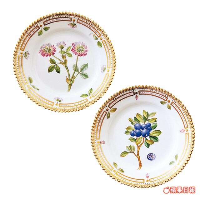 「丹麥之花」系列餐具誕生於18世紀,葉子、花瓣皆是畫師依循古本圖鑑描繪,片片花蕊則是師傅巧手捏製,水果籃為工藝代表。