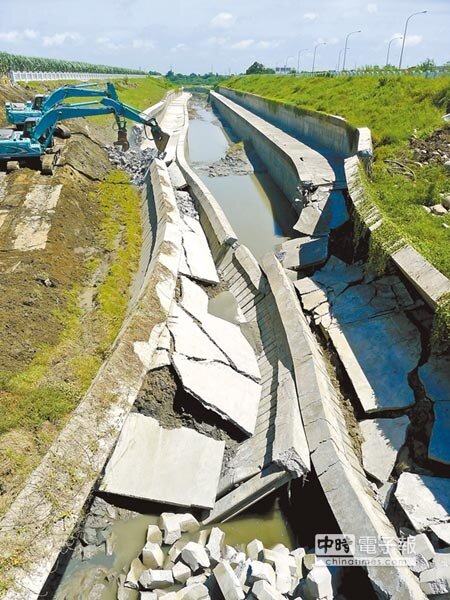 耗資10億1000萬元的台南市港尾溝溪排水中游疏洪道,7月底才由時任經濟部次長的杜紫軍與台南市長賴清德主持完工典禮,啟用僅19天,15日竟崩塌長達170公尺,民眾痛罵「10億元工程都還沒滿月,塌成這樣有夠夭壽!」