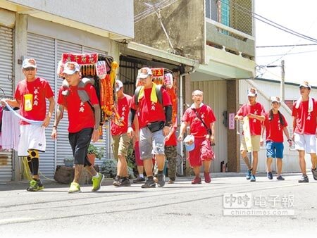 「南瀛行善系」是五府千歲賜給顏維勳的名字,今年5月初,他接收到王爺指示,要徒步回台南還願,出發當天正好尼伯特颱風襲台,顏不畏風雨行程照常,所幸一路風雨不大,背著重達40公斤左右的神尊,徒步超過400公里,17日順利抵達南鯤鯓。