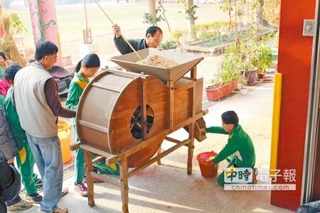 烏塗村耆老很幫忙,教孩子插秧,學生學得快,3年傳承,高年級學生已經可以獨當一面教學弟妹。校長廖建盛說,最「感心」的是,村人還挖出許多老古董,以手搖風鼓車去空包彈,腳踏脫穀機脫穀粒,孩子在實作中認識了許多台灣早期農村文物。