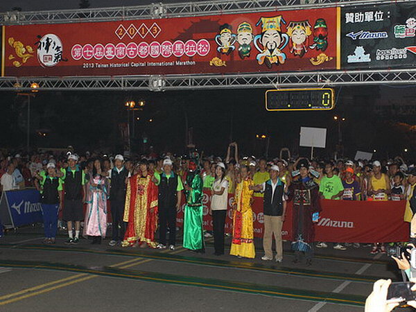 本次賽道兩旁啦啦隊的熱情打氣,是由個別扮演的玉皇大帝、媽祖娘娘、鄭成功、關公及陳靖姑來為整場賽事加持,現場氣勢如虹,跑友們有如神助,跑起來特別舒暢。