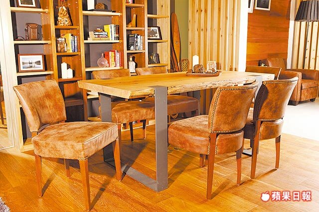 單價較低的咖啡單人椅很有復古味,最受歡迎。Avenue Chair沙發椅,邊緣的鉚釘設計很摩登,內材使用西伯利亞水鳥羽絨,輕盈、透氣。大器溫暖的古典圖書L型沙發組合,也頗受好評。此外,還有美國香杉木實木桌,輕嗅有香氣。郭魯娣說:「實木桌原本只當店裡的陳設,但因為搭皮椅好看,詢問度高,所以也開始銷售。」