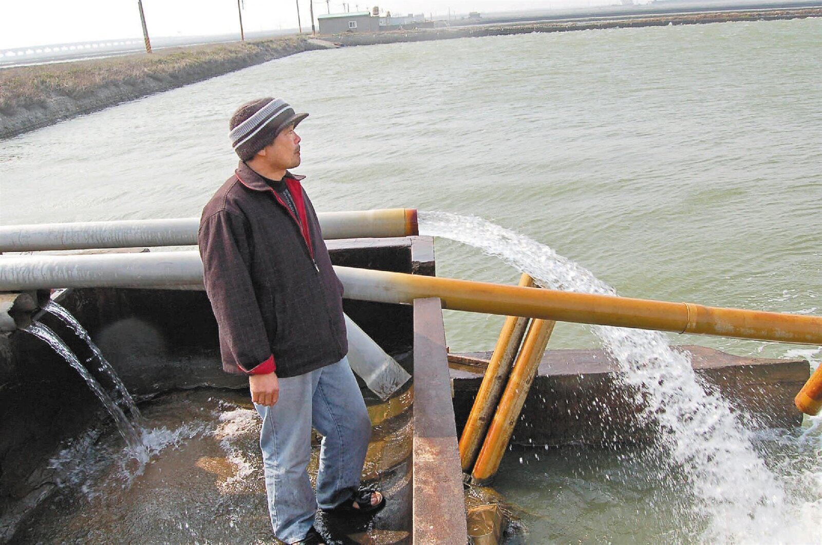寒流侵襲,雲林養殖業者擔心魚會被凍死,趕忙抽地下水為魚禦寒,顧不得地層下陷的問題。(記者蔡維斌/攝影)