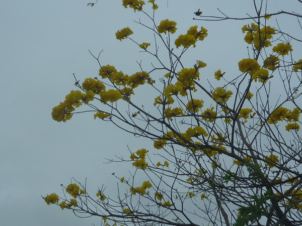 原本樹葉茂密的黃金風鈴木並未引人注目,但經過冬天的落葉期之後,整個枝幹彷若枯枝,枝條上花苞在春暖之際就陸續綻放出耀眼的金黃花朵,讓不少途經的民眾都不禁停下賞花,也對這種整樹見花不見葉的花景讚美不已。