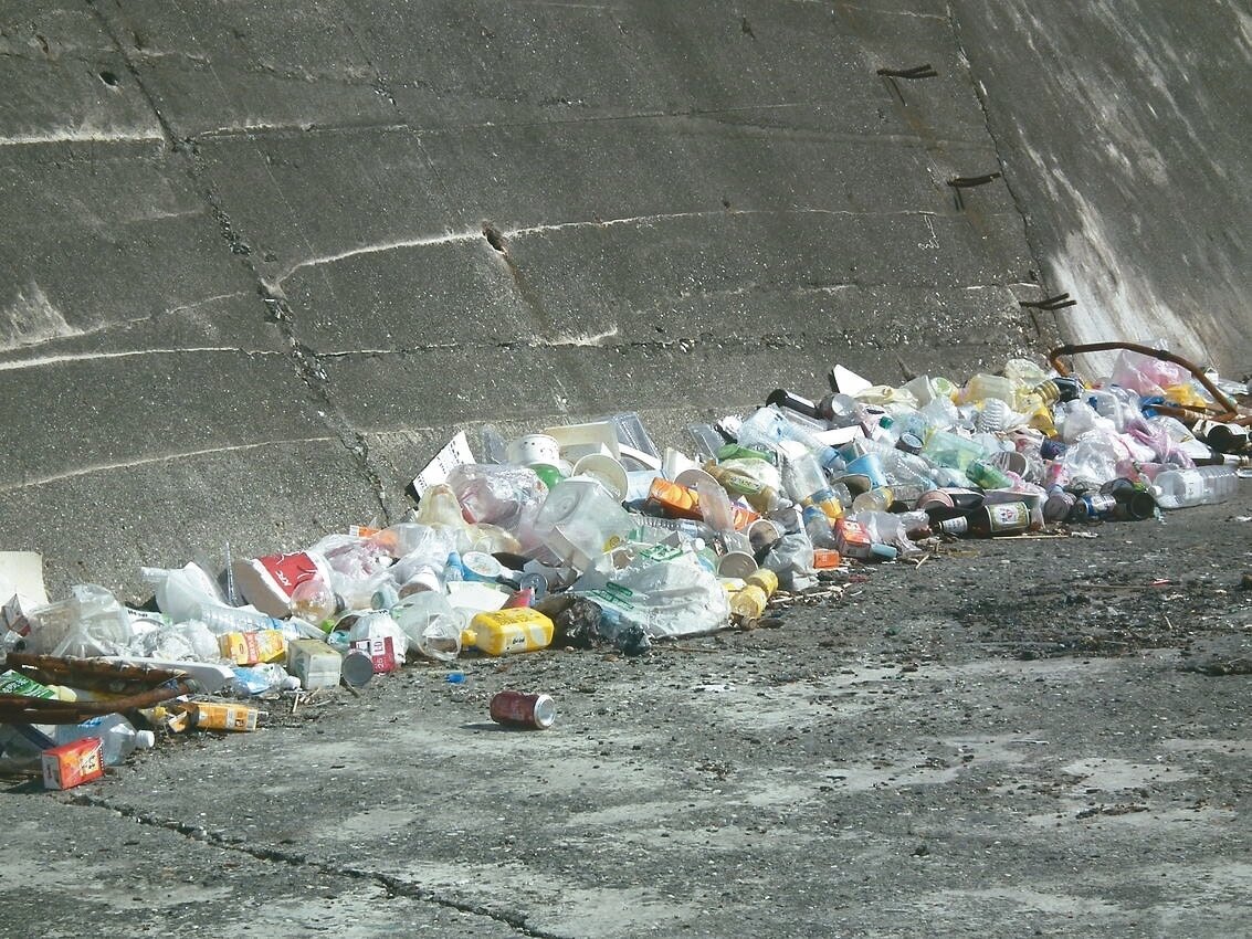 民眾看了堤防的垃圾,痛批這是海洋殺手的源頭。 (記者尤聰光/攝影)
