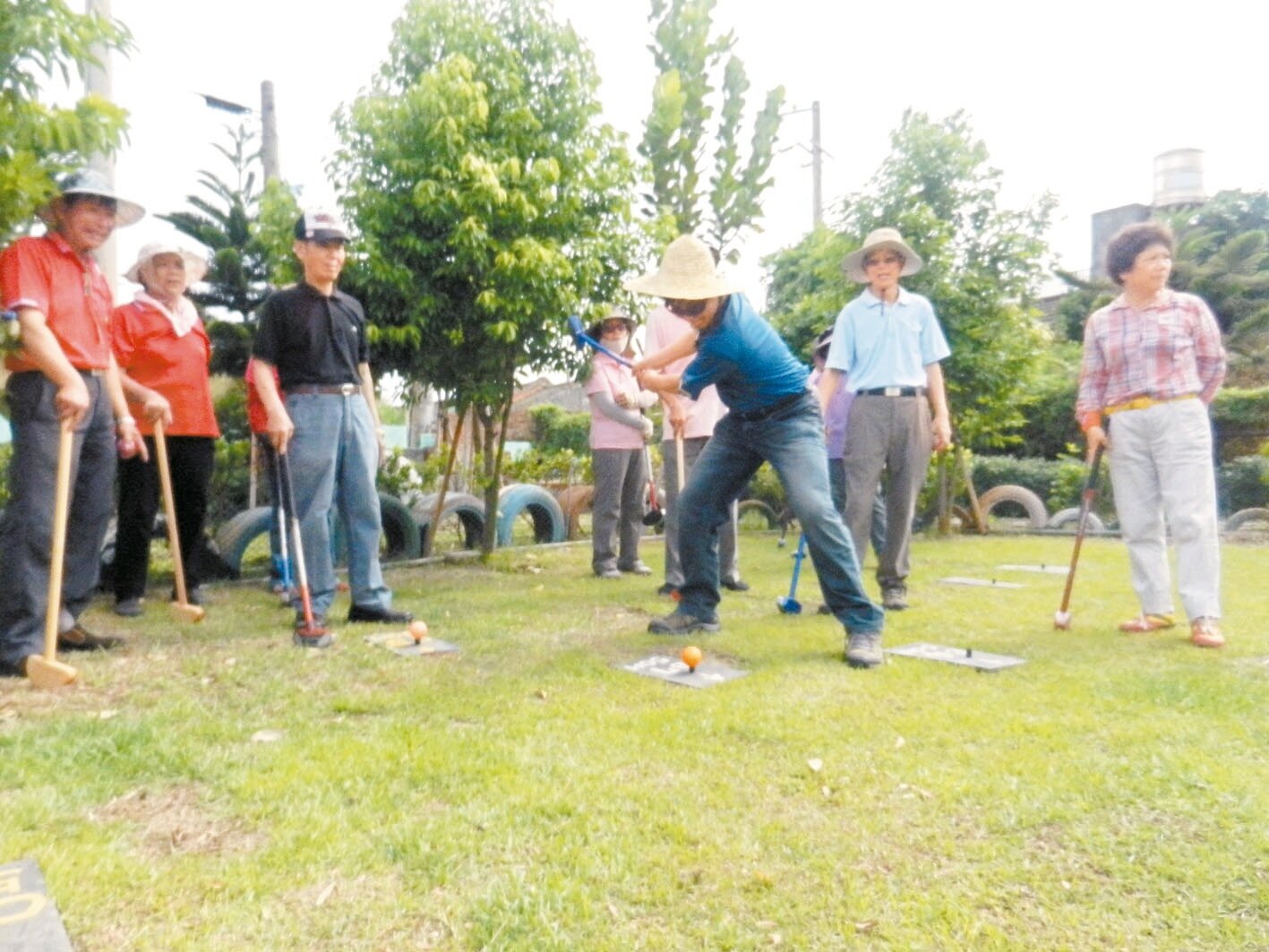 協會秘書陳明雄表示,槌球場中央不能種樹,為保護綠地的數十棵樹木,協會改為推廣地面高爾夫球,球場周圍設計草皮、木棧道、碎圓石接遞的「三溫暖」步道,民眾如果不打球,可繞走球場227公尺步道,同樣達到運動效果。