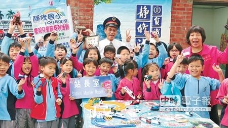 在家長會長蕭昆璋支持下,靜修師生聯手將緊鄰靜修路的校園東南角規畫出鐵道風裝置藝術,原本的廢棄、閒置空間搖身成為校園亮點。配合兒童節,本月發起人人捐二手玩具送學校的活動,第一天就收到近百件小火車頭和軌道,都將擺在鐵道園區文物館陳設,和更多小鐵道迷交流。