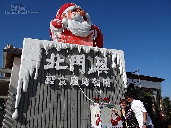 雲嘉南管理處鄭榮峯處長表示,聖誕老公公矗立於北門嶼餐廳屋頂,搭配煙囪造型,約高3米、寬2-3米,是知名藝術家莊必上老師以保麗龍為材質,局部噴上粗鹽精心雕塑而成的。聖誕老公公手上並由麻繩連結至底下設立的郵箱,以方便遊客將寫好的明信片投入,由於身在高處醒目,加上造型亮眼,成為吸睛標的。
