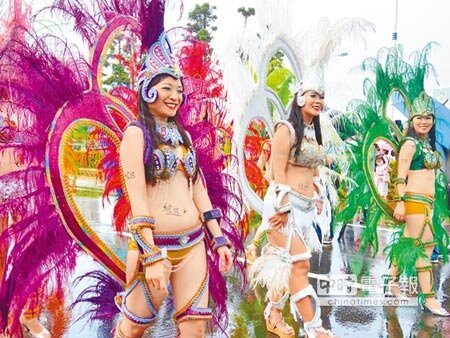 除此之外,還有韓國、巴西、美國、墨西哥等外國學生,肩扛3公尺高的巨型女神像遊街,霎時令港區飄散濃厚的異國風格,不少遊客佇足拍照,四處漫延著歡樂氣氛。