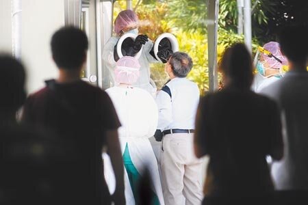新北市快篩站15日有許多民眾排隊檢測。圖/中時電子報