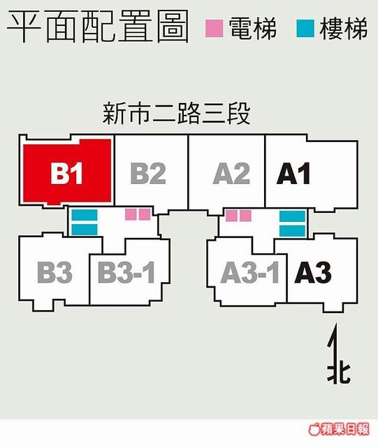 該案基地面積675坪分為A、B兩棟,每棟1樓挑高6米、樓高3.5米,另14樓為3.6米;坪數規劃36~50坪,產品設計3~4房;A1、A3、B1、B3戶別擁3面採光,且房間、衛浴均有開窗設計。