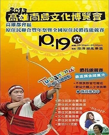 高雄南島文化博覽會活動將於今(102)年10月19日(六)在澄清湖熱鬧登場,體技能競賽將於10月15日17點截止報名收件,不限族別國籍男子皆可報名參加,請民眾把握最後機會。