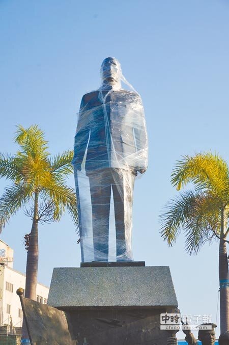 台南市新營也有民眾在蔣公銅像前燒掉憲法道具,但公園中的銅像,卻被保鮮膜包起來保護,抗議民眾說用保鮮膜包很不要臉。新營區長張睿民表示,銅像包保鮮膜是正好要維修,不是怕被遊行民眾破壞。