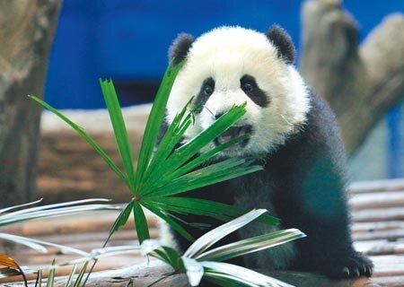 圓仔7日上午8點40幾分進到展示場,熟練地在棲架爬上爬下,媽媽圓圓坐在一旁吃早餐,邊看女兒玩耍。不過,9點10分開館不久,圓仔就越來越沒電,部分第一波進場觀眾只看到牠活動2分鐘,大呼好可惜。來台灣自由行的澳洲遊客Bayliss和Stroak,昨日知道能見到圓仔,覺得很驚喜,讚美牠「好可愛」。