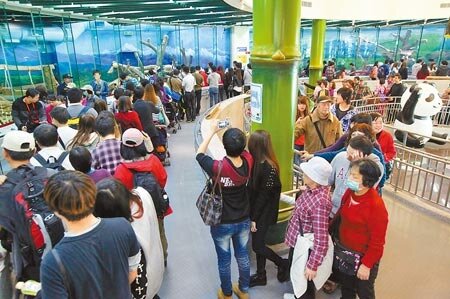 有別於6日上千民眾排隊入園,昨天開園前就來報到的人數下降到約600人,也多了更多學生族和幼稚園去校外教學,連花蓮的修女也坐火車北上看圓仔。整天下來,入園人數衝破1萬1100人,較前1天增加1500多人。