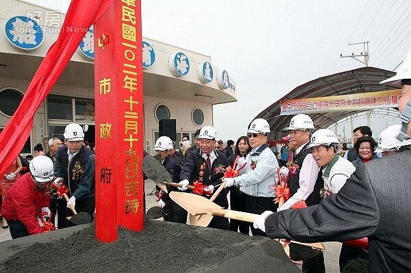 台中市府為建構完整的報中市濱海自行車道,19日在大甲區松柏港旁舉行「台中市濱海北端大甲及大安區自行車道興建工程」開工典禮。(記者陳榮昌攝)