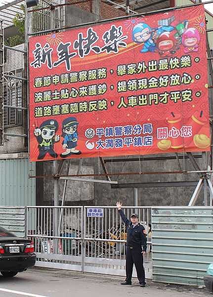 另,平鎮警分局更是特別在平鎮市各重要道路掛滿羅馬宣導旗及巨型看板,希望警民合作,共同攜手合作維護治安。平鎮警分局分局長詹永茂呼籲,請市民朋友參加餐敘聚會時,切記「喝酒不開車、開車莫喝酒」,避免因酒駕肇事而傷人害己。