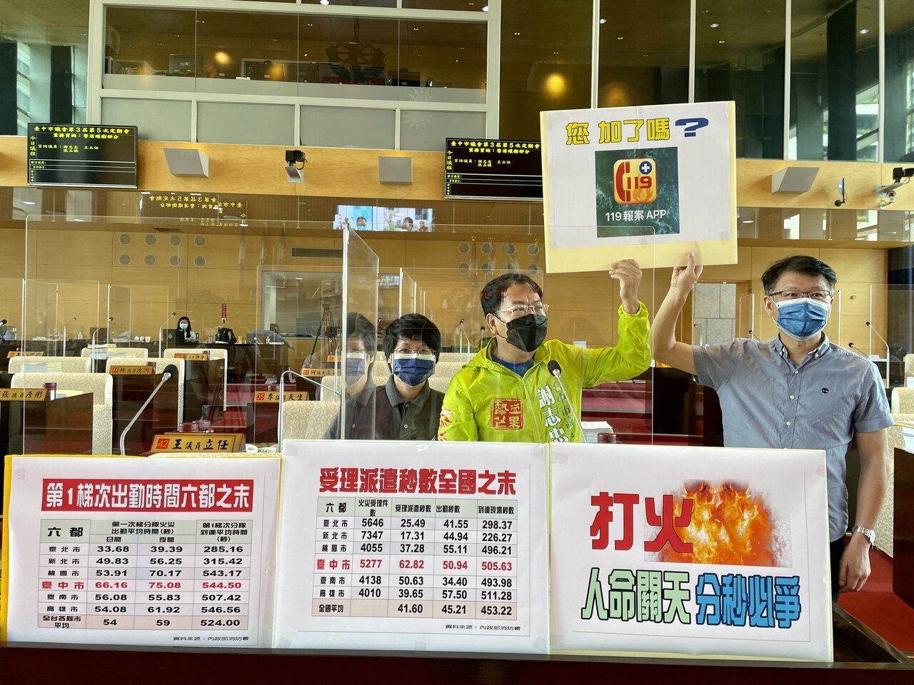 議員質疑,台中火災的派遣秒數最慢、消防老爺車也是六都最多,要求消防局改善,勿重演「火神的眼淚」。記者喻文玟/攝影