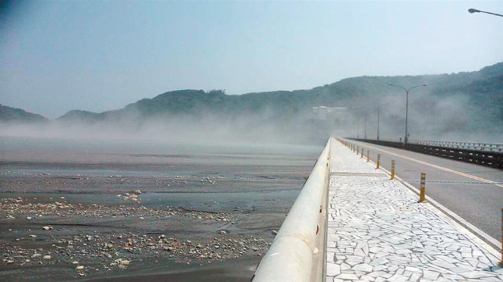 陳世嵐說,這兩天風勢強勁,漫天風沙狂捲,「只要下了雨,風飛沙的情形就會減少了」。環保局表示,昨天已與第九河川局進行水幕防塵,今天,會與宜蘭縣環保局人員到和平溪口會勘。九河局昨天下午3度出動水槍在東華大橋旁噴水抑制河床揚塵,「馬達都要燒壞了」,只是5百多公頃沙塵害,杯水車薪不見效果。