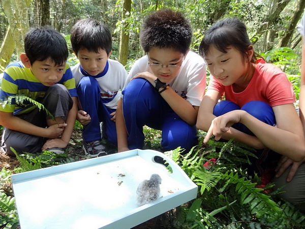 魚池鄉五城國小學生課外教學觀察鵂鶹寶保之情形。