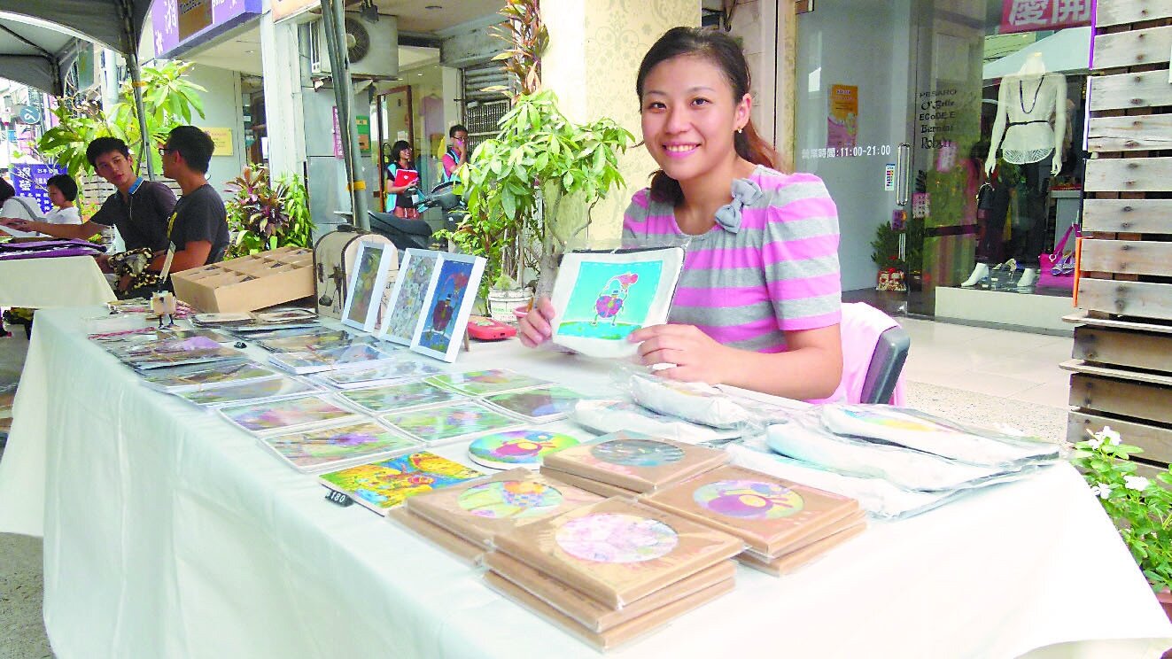 桃園市新民街創意市集,不少文創青年受邀展售作品。(記者鄭國樑/攝影)