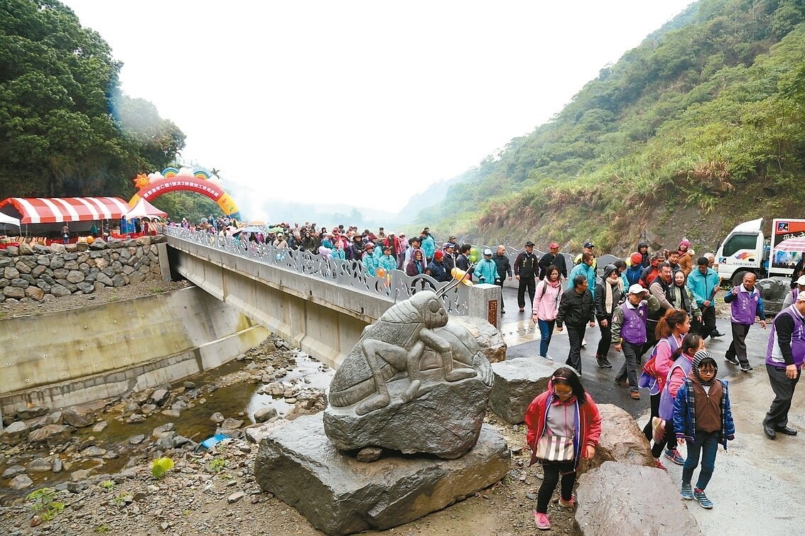 因道路崩坍地範圍太大且有蝕溝水路沖刷,加上岩壁地勢陡峭,在原崩塌處設置吊橋恐有落石風險,經多次踏勘後,嘉邑行善團前年底動土興建園區內的仁觀一、二號橋,受限於地形與氣候,工程難度艱峻,終在去年底竣工。行善團挹注橋梁建造費用3869萬元,設計及監造費190萬縣府負擔。