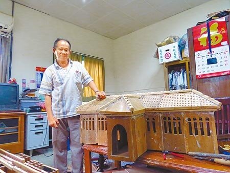 樂生療養院民茆萬枝捨不得院區的拆遷,雙手手指因病潰爛、退化,仍親手製作院區模型。(記者謝幸恩/攝影)