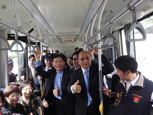 台中市胡志強市長試搭電動公車。(記者賴淑禎攝)