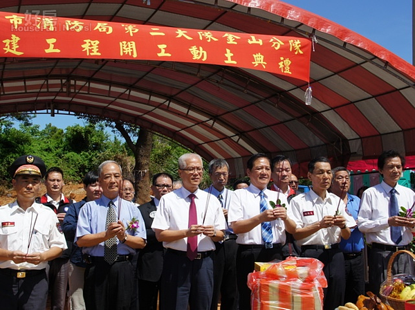 消防局第2大隊金山分隊新建工程開工動土典禮4日上午舉行,市議會謝文進議長、義消總隊長鄭成光、消防署副署長黃能漢及地方人士代表多人應邀出席。許明財市長感謝大家見證這歷史的一刻,東區人口已經超過20萬人以上,在安全設施上急需充沛人力與器材,金山消防分隊的成立,最好是備而不用,但是在協助救護的部分,一定是全力以赴,照顧好所有市民的健康與安全並保障身家財產。