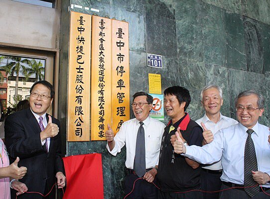 設在台中市民權路市府交通局辦公室的BRT公司10月1日成立,今天在西區民權路101號市府交通局大門口揭幕,由董事長蕭家淇主持揭牌儀式,交通局長林良泰、都發局長何肇喜、顧問黃崇典、議員陳有江等人均到場祝賀。