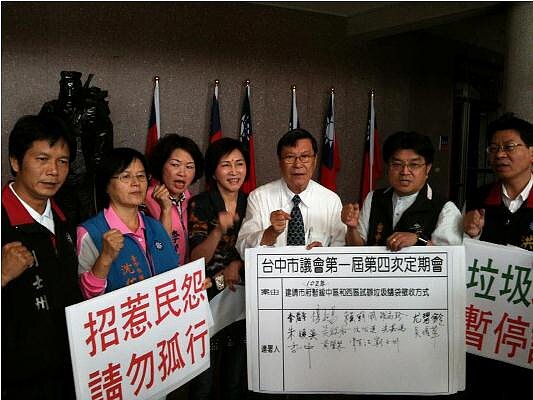 市議員李麗華、黃馨慧、李中、李榮鴻、楊永昌、陳有江、劉士州、沈佑蓮、洪嘉鴻、尤碧鈴、蘇麗華、羅永珍、朱暖英、賴朝國、張宏年等人今天召開記者會,他們指出,環保局將在明年三到六月,先在中區和西區試辦垃圾隨袋徵收方式,接著全市廿九區均要實施,理由是減少垃圾量。