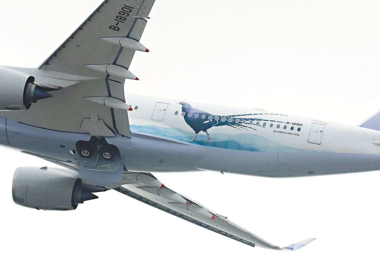 華航引進首架A350新機十月一日抵台後,彩繪為「帝雉機」,昨天亮相。華航表示,A350是全球最新型空中巴士客機,以最科技、節能、環保、寬敞、安靜著稱,十月卅一日將首航香港,明年元月投入歐洲航線,往返台歐的旅客不必再中停,可省四小時航程。