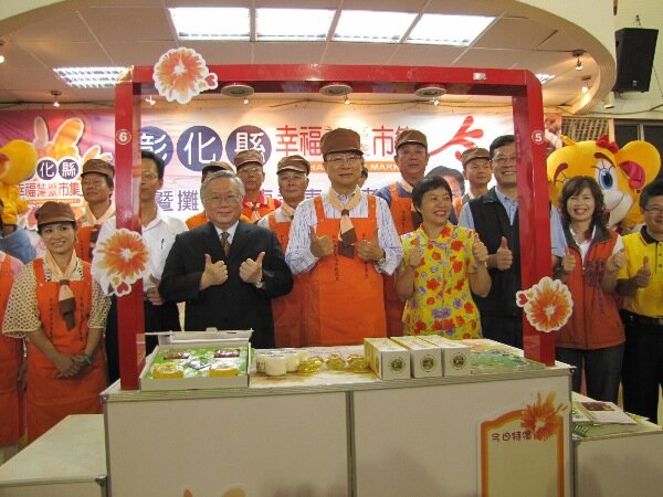 彰化縣政府於7日上午在縣府中庭舉行「彰化縣幸福社區產業市集」攤位發表會暨揭幕儀式,由縣長卓伯源為特色花車攤位正式揭幕亮相,同時邀請10個社區現場展售社區特色產業商品,展現社區活力,同時,預告「幸福社區產業市集」即將在9日開市的好消息!