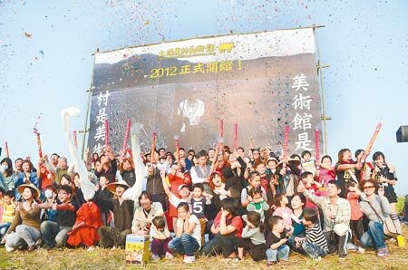 參與開館活動的台南後壁土溝里民、慕名而來的外地人及邀展藝術家、土溝在地創作者或坐或站,在稻田裡舉辦「土溝農村美術館」開館儀式,策展單位「優雅農夫藝術工廠」執行長黃鼎堯說,農村美術館讓農田成為畫布,農作物成為農民的作品,更深一層解釋,不只藝術家參展,所有參與的民眾,都成為作品的一部分。