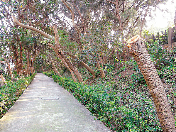 投訴民眾說,常到愛民公園散步,走在宛如綠色隧道的隧道,前天下午發現有工人鋸樹。她認為,枝葉和住家還有一段距離,應該不會影響住戶。她說,「修剪樹木可以,但作法太粗糙」。