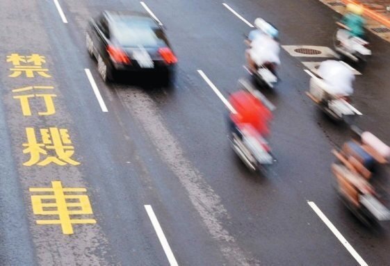 交通局表示,去年一月起鎖定機車使用率、肇事率高的平面道路試辦,雖然成本比一般標線高出三倍,但機車肇事率降低,未來將擴大到全市。