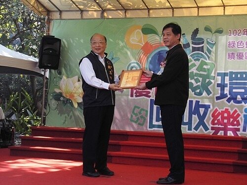 胡市長頒獎表揚資源回收績優單位。(記者賴淑禎攝)
