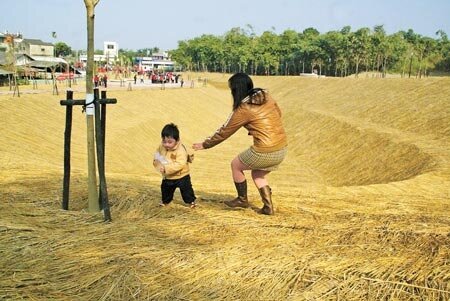 林內鄉公所設計以緩降坡方式開挖2米深的生態池,雨季作為分洪之用,周邊遍植香楓、風鈴木、台灣欒樹,全面種植草皮,平時就是民眾休閒散步去處。新落成的防洪治水減災公園目前鋪滿稻草,保護剛灑下的草籽。
