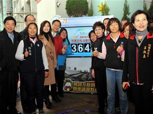 桃園縣103年12月25日將正式升格為直轄市,縣府25日特別舉行「升格倒數計時暨聖誕節點燈」儀式,十多位縣議員與桃園縣長吳志揚一起啟動倒數計時。吳志揚表示,縣府將在未來的一年積極推動各項重大建設的進行與社會福利的改善,讓全體民眾生活在升格後感受到真正的有感。