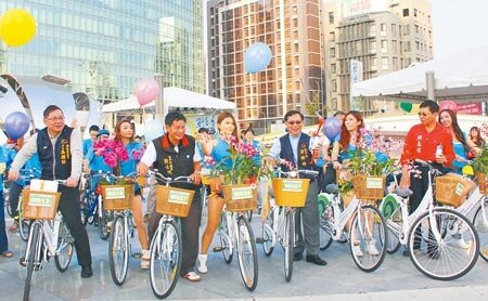 2013漫遊草悟道自行車嘉年華,昨日副市長蔡炳坤(右4)等人,帶領民眾騎車環遊全市最美的草悟道!(記者陳世宗/攝影)