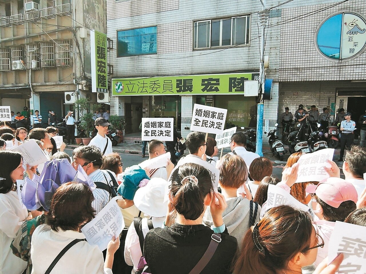 上百名民眾昨天前往民進黨立委張宏陸的板橋服務處陳情 ,表達反對立法院同性婚姻修法、反對同性婚姻合法化的立場,並主張應舉辦公聽會,透過全民公投才能更改婚姻制度;張宏陸強調,會傾聽多方意見,修法仍以民意為先。