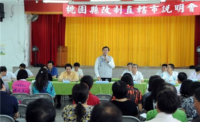 桃園縣政府為因應103年12月25日改制成直轄市,為有效整合地方資源避免重置浪費,以及均衡地方建設與發展。10日起,由縣長吳志揚帶領民政、財政、人事等縣府相關機關首長,輪流到13鄉鎮市召開改制直轄市說明會,直接面對地方民意代表和意見領袖聽取地方各界的聲音,作為推動改制工作的參考依據。