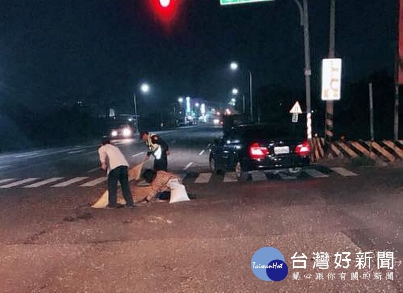 媽祖大橋北端路口,日前突然出現大量黃豆散落馬路中,不少車輛為了閃避而停在路中,造成車流回堵、交通秩序混亂,現場喇叭聲此起彼落,警員陳裕宏等巡羅發現,立即通知里長吳東合及所內同仁帶著打掃工具來幫忙,警民合作從黃昏掃到夜黑,花了1個多小時將散落滿地的黃豆全數掃起,讓交通恢復順暢。