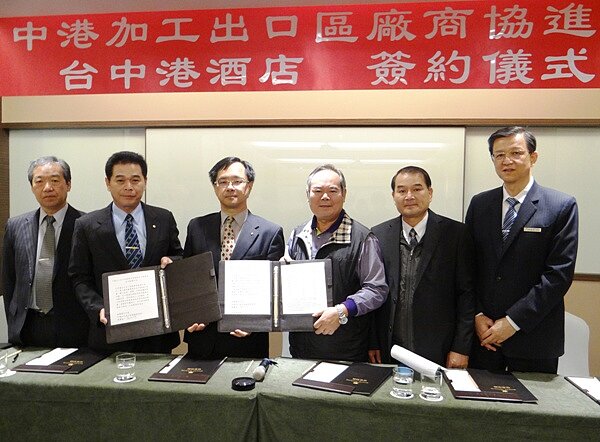 由經濟部加工出口區中港園區逾50家廠商組成的「中港加工出口區廠商協進會」也由分處長梁又文及與廠協會創會理事長謝明源共同代表與台中港酒店簽約,未來廠協會廠商都能以低於5折的優惠價格訂房,酒店並專為中港園區商務人士提供免費接駁服務,為中部地方的觀光旅遊和台中港區的商務發展注入一股新活力。
