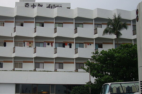 在花蓮市美崙地區一家臨太平洋濱的老字號飯店,近兩年因為入住的客人改變了,竟也讓飯店外觀的「風景」,也跟著改變了;許多早晨起來運動的花蓮市民見到這個改變後的畫面,也不僅莞爾。