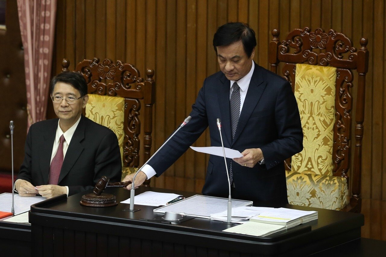 立法院昨天在院長蘇嘉全(右)的主持下三讀通過再生能源發展條例修正案。 記者葉信菉/攝影
